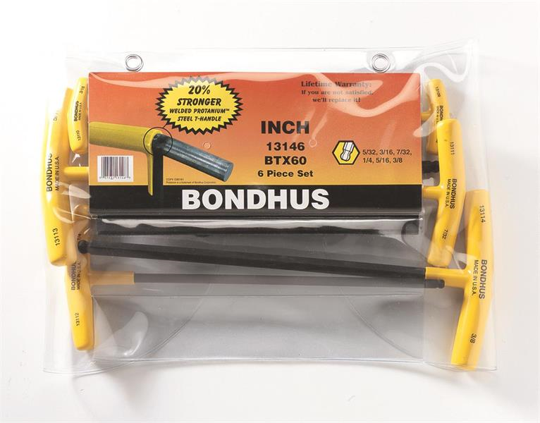 Ball End Tip Graduated Length T-Handle Set of 6 Pieces with ProGuard™ Finish. Includes Sizes: 5/32", 3/16", 7/32", 1/4", 5/16" & 3/8"