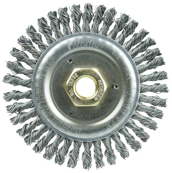 Weiler 4-1/2" Roughneck Stringer Bead Weld Cleaning Brush is suitable for cleaning root and hot passes and reaching into corners. 5/8"-11 nut for use on right angle grinders.
