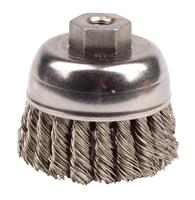 Weiler 2-3/4" Single Row Knot Wire Cup Brush provides heavy-duty brushing action with some flexibility. Ideal for demanding cleaning applications on relatively flat surfaces. 3/8"-24 nut for use on right angle grinders.