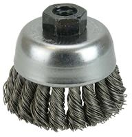 Weiler 2-3/4" Single Row Knot Wire Cup Brush provides heavy-duty brushing action with some flexibility. Ideal for demanding cleaning applications on relatively flat surfaces. M10 x 1.25 nut for use on right angle grinders.