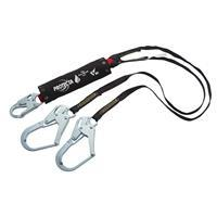 6 ft. (1.8m) double-leg 100% tie-off with Kevlar fiber webbing and shock pack, snap hook at center, steel rebar hook at leg ends.