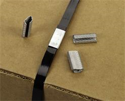 Single-feed serrated seals are designed to grip polyester strapping material tightly to form a secure seal when used with tensioner and sealer. Serrated seals provide high joint efficiency.
