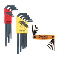 Bonus Triple Pack. 10999 (Ball End Tip Hex Key L-wrench Set of 9 Pieces with ProGuard™ Finish. Long Arm. Packaged in Bondhex Color Coded Case. Sizes: 1.5mm, 2mm, 2.5mm, 3mm, 4mm, 5mm, 6mm, 8mm & 10mm) -- & -- 10937 (Ball End Tip Hex Key L-wrench Set of 13 Pieces with ProGuard™ Finish. Long Arm. Packaged in Bondhex Color Coded Case. Sizes: .050", 1/16", 5/64", 3/32", 7/64", 1/8", 9/64", 5/32", 3/16", 7/32", 1/4", 5/16" & 3/8") -- & -- 12550 (GorillaGrip Hex Tip Fold Up 12 Piece Tool. Color Coded, made of Protanium high torque steel, with ProGuard™ Finish. Includes sizes: 5/64", 3/32", 7/64", 1/8", 9/64" & 5/32" & 1.5mm, 2mm, 2.5mm, 3mm, 4mm & 5mm)