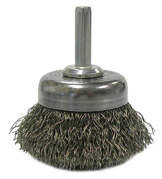 Weiler 1-3/4" Crimped Wire Utility Cup Brush provides very flexible brushing action for light to medium duty, general purpose applications. 1/4" stem for use on CNC/milling/automatic machine, die grinder, drill, drill press, right angle die grinder and straight grinders.
