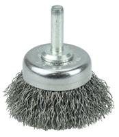 Weiler 1-3/4" Crimped Wire Utility Cup Brush provides very flexible brushing action for light to medium duty, general purpose applications. 1/4" stem for use on CNC/milling/automatic machine, die grinder, drill, drill press, right angle die grinder and straight grinders.