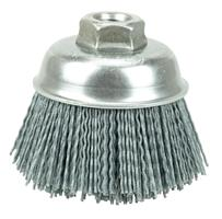 Nylon Cup Brushes - Weiler also offers an assortment of Nylon tools featuring traditional cup brush construction for deburring and finishing use in lighter duty applications. These brushing tools can be used on dedicated machines in automated processes or on low speed/high torque handheld tools for manual applications.