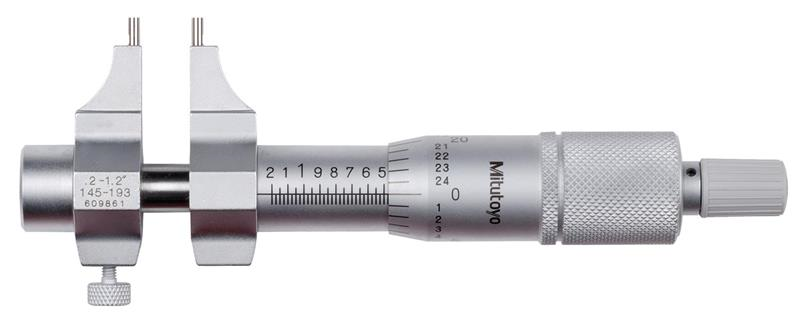 0.2 to 1.2 Inch Range, Carbide Satin Chrome Coated, Mechanical Inside Caliper Micrometer