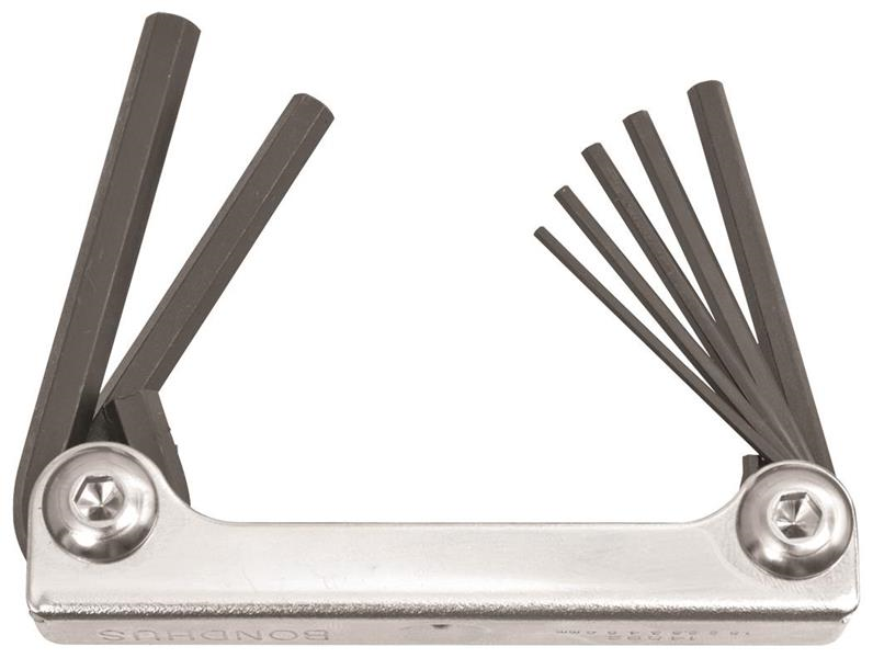Metal Handle Hex Tip Fold Up 7 Piece Tool with ProGuard™ Finish. Includes sizes: 2mm, 2.5mm, 3mm, 4mm, 5mm, 6mm & 8mm