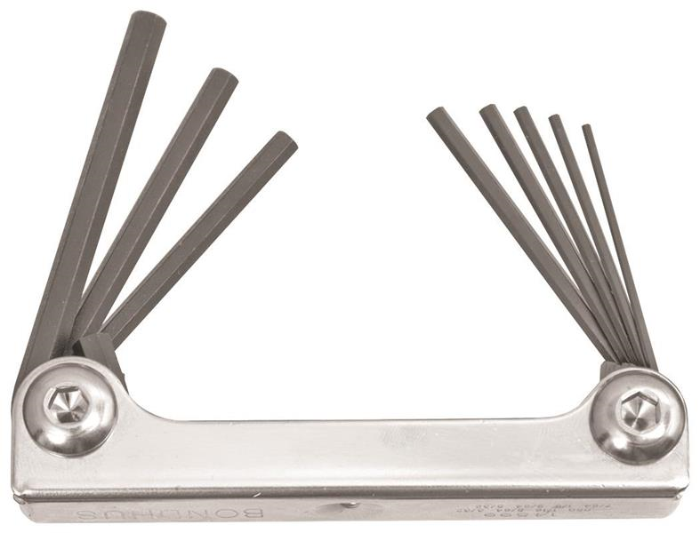 Metal Handle Hex Tip Fold Up 8 Piece Tool with ProGuard™ Finish. Includes: .050", 1/16", 5/64", 3/32", 7/64", 1/8", 9/64" & 5/32"