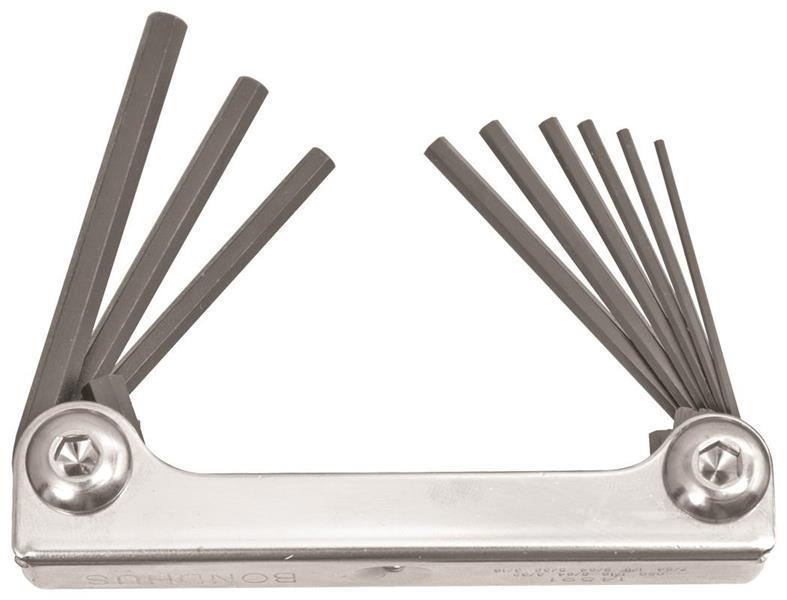 9 Piece Hex Metal Handle Fold-up Tool - Sizes: .050-3/16 Inch
