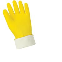 These 18 mil yellow latex gloves are flock linedto absorb moisture from hands and feature a diamond pattern finish that improves grip. They are 12 inches long with a rolled/beaded cuff that prevents liquids from running down the arm