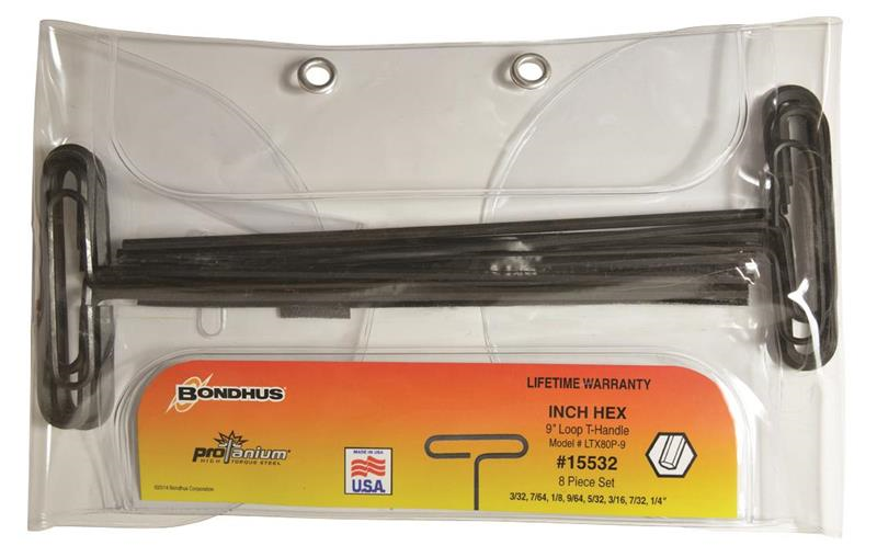 Hex Tip 9" Loop T-Handle Set of 8 Pieces with ProGuard™ Finish. Set includes: 3/32", 7/64", 1/8", 9/64", 5/32", 3/16", 7/32" & 1/4"