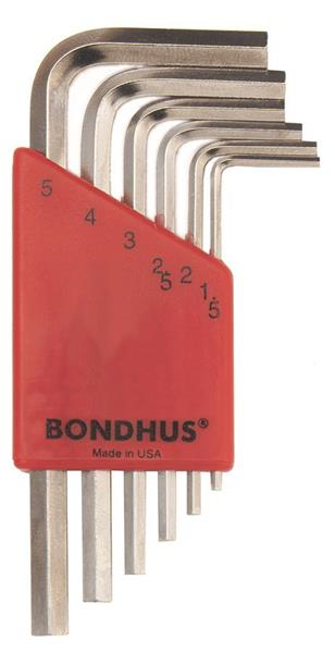 Hex Tip Hex Key L-wrench Set of 6 Pieces with BriteGuard Finish. Short Arm. Packaged in Bondhex Color Coded Case. Includes sizes: 1.5mm, 2mm, 2.5mm, 3mm, 4mm & 5mm
