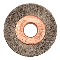 Weiler 1" Small Diameter Crimped Wire Wheel Brush provides a flexible brushing action and consistent performance for demanding light duty cleaning and deburring applications. Featuring Weiler's solid ring construction, these radial brushes are available in heat-treated steel, type 302 stainless steel and brass wire for use in a wide variety of applications. 1/4" arbor hole for use on die grinder, right angle die grinder and drills.