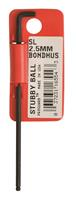 Stubby Ball End Tip Hex Key L-wrench with ProGuard™ Finish. Tagged & Barcoded. Long Arm. Size: 2.5mm Length: 88mm