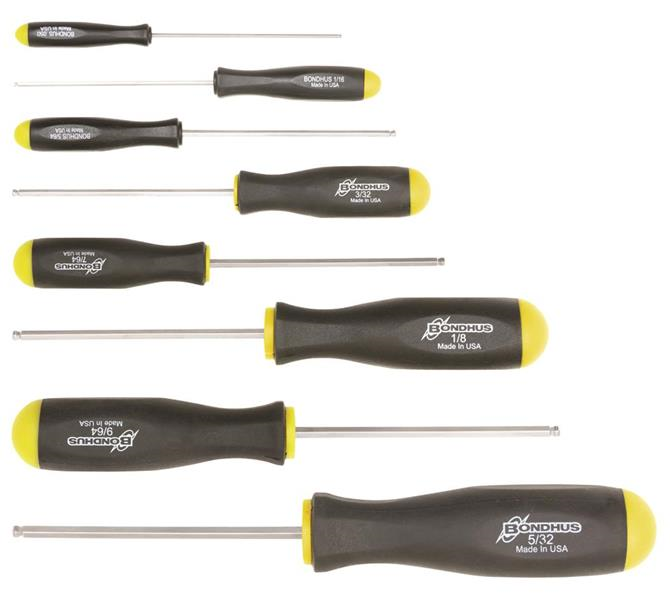 Ball End Tip Hex Screwdriver Set of 8 Pieces with BriteGuard Finish. Set includes Sizes: .050", 1/16", 5/64", 3/32", 7/64", 1/8", 9/64" & 5/32"