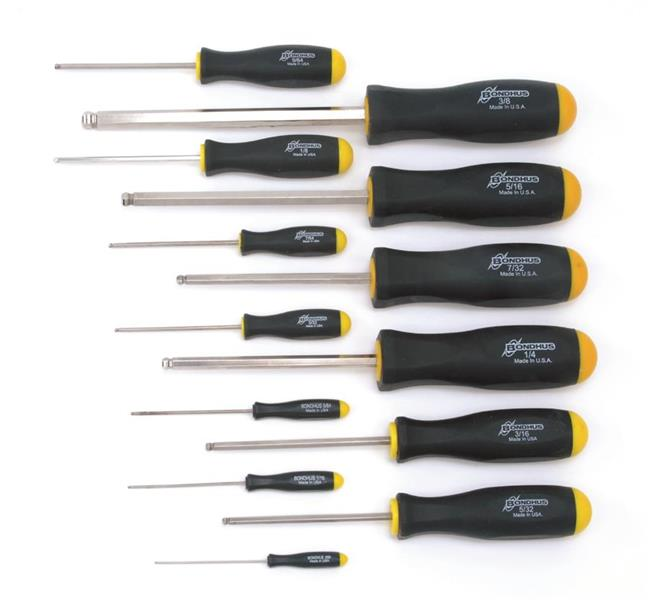 Ball End Tip Hex Screwdriver Set of 13 Pieces with BriteGuard Finish. Set includes Sizes: .050", 1/16", 5/64", 3/32", 7/64", 1/8", 9/64", 5/32", 3/16", 7/32", 1/4", 5/16" & 3/8"