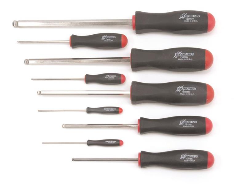 Ball End Tip Hex Screwdriver Set of 9 Pieces with BriteGuard Finish. Set includes Sizes: 1.5mm, 2mm, 2.5mm, 3mm, 4mm, 5mm, 6mm, 8mm & 10mm