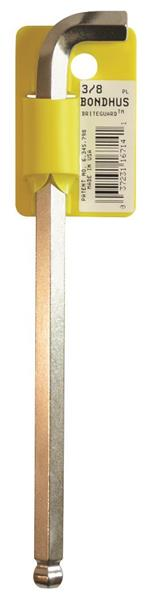 Stubby Ball End Tip Hex Key L-wrench with BriteGuard Finish. Tagged & Barcoded. Long Arm. Size: 3/8" Length: 6.0"