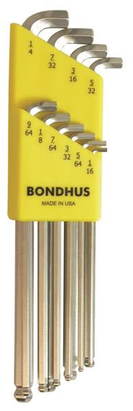 Stubby Ball End Tip Hex Key L-wrench Set of 10 Pieces with BriteGuard Finish. Long Arm. Packaged in Bondhex Color Coded Case. Includes sizes: 1/16", 5/64", 3/32", 7/64", 1/8", 9/64", 5/32", 3/16", 7/32" & 1/4"
