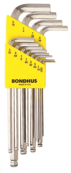Ball End Tip Hex Key L-wrench Set of 12 Pieces with BriteGuard Finish. Long Arm. Includes: .050", 1/16", 5/64", 3/32", 7/64", 1/8", 9/64", 5/32", 3/16", 7/32", 1/4" & 5/16"