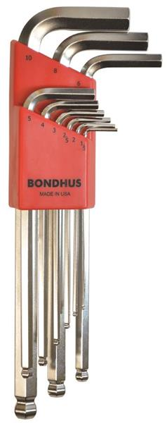 Ball End Tip Hex Key L-wrench Set of 9 Pieces with BriteGuard Finish. Long Arm. Packaged in Bondhex Color Coded Case. Includes sizes: 1.5mm, 2mm, 2.5mm, 3mm, 4mm, 5mm, 6mm, 8mm & 10mm