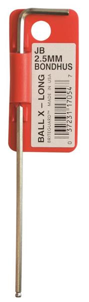 Ball End Tip Hex Key L-wrench with BriteGuard Finish. Tagged & Barcoded. Extra Long Arm. Size: 2.5mm Length: 112mm