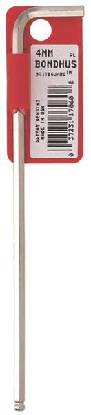 Ball End Tip Hex Key L-wrench with BriteGuard Finish. Tagged & Barcoded. Extra Long Arm. Size: 4mm Length: 142mm
