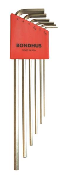 Hex Tip Hex Key L-wrench Set of 6 Pieces with BriteGuard Finish. Extra Long Arm. Packaged in Bondhex Color Coded Case. Set Includes: 1.5mm, 2mm, 2.5mm, 3mm, 4mm & 5mm