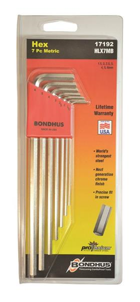 Hex Tip Hex Key L-wrench Set of 7 Pieces with BriteGuard Finish. Extra Long Arm. Packaged in Bondhex Color Coded Case. Set Includes: 1.5mm, 2mm, 2.5mm, 3mm, 4mm, 5mm & 6mm