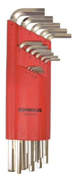 Hex Tip Hex Key L-wrench Set of 15 Pieces with BriteGuard Finish. Extra Long Arm. Packaged in Bondhex Color Coded Case. Set Includes: 1.27mm, 1.5mm, 2mm, 2.5mm, 3mm, 3.5mm, 4mm, 4.5mm, 5mm, 5.5mm, 6mm, 7mm, 8mm, 9mm & 10mm