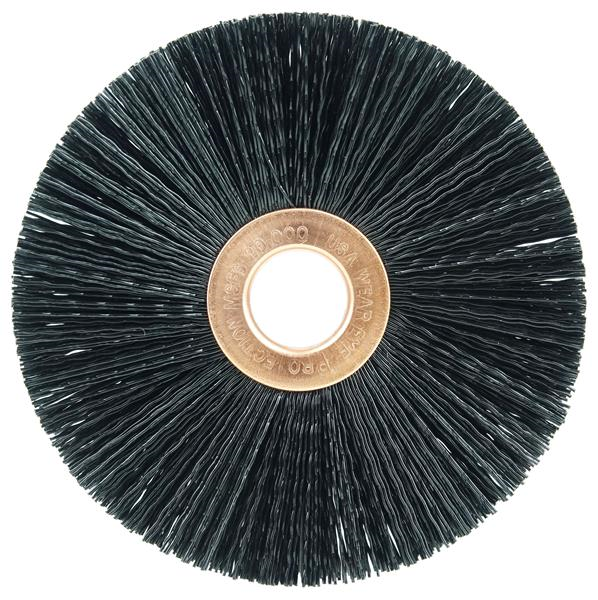 Weiler 3" Small Diameter Nylon Wheel Brush provides a flexible brushing action and consistent performance for demanding light duty cleaning and deburring applications. Featuring Weiler's solid ring construction, these radial brushes are available in heat-treated steel, type 302 stainless steel and brass wire for use in a wide variety of applications. 1/2" arbor hole for use on die grinder, right angle die grinder and drills.