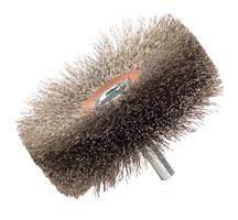 Weiler 3" Wide Face Stem-Mounted Crimped Wire Wheel provides a flexible brushing action and consistent performance for demanding light-duty cleaning and deburring applications on stainless steel. The permanently-attached 1/4 in stem are intended for use on CNC,/Milling/Automatic Machines, Die Grinders, Drills, Drill Presses, Right Angle Die Grinders and Straight Grinders. Although they can also be mounted onto a drill, the speed and power of that tool will decrease the effectiveness of the brush. Featuring Weiler's solid ring construction, these radial wheels are available in heat-treated steel, type 302 stainless steel and brass wire.