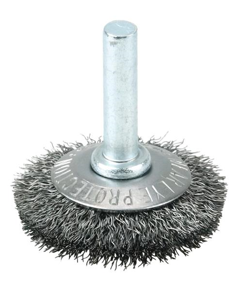 Weiler 1-1/2" Stem-Mounted Concave Crimped Wire Wheel provides a flexible brushing action for addressing corners and hard-to-reach areas on steel. The permanently-attached 1/4 in stem are intended for use on CNC,/Milling/Automatic Machines, Die Grinders, Drills, Drill Presses, Right Angle Die Grinders and Straight Grinders. Although they can also be mounted onto a drill, the speed and power of that tool will decrease the effectiveness of the brush. Featuring Weiler's solid ring construction, these radial wheels are available in heat-treated steel, type 302 stainless steel and brass wire
