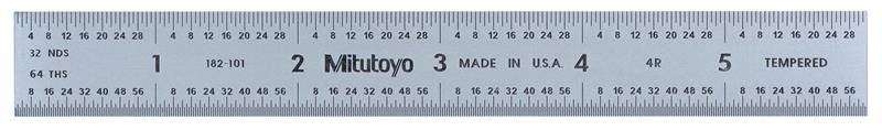 6 Inch Long, 4R Graduation, 3/4 Inch Wide, Satin Chrome Finish Rigid Steel Rule