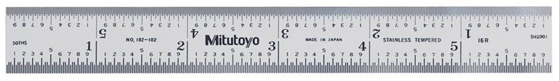 6 Inch Long, 16R Graduation, 3/4 Inch Wide, Satin Chrome Finish Rigid Steel Rule