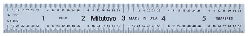 6 Inch Long, 5R Graduation, 3/4 Inch Wide, Satin Chrome Finish Rigid Steel Rule