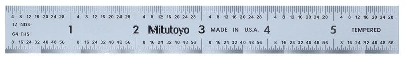 6 Inch Long, 3R Graduation, 3/4 Inch Wide, Satin Chrome Finish Rigid Steel Rule