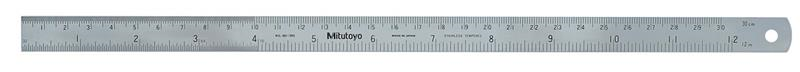 12 Inch x 300mm Steel Rule, 5/8 Inch Wide, One-side, Semi-flexible, Satin Chrome Finish Tempered Stainless Steel, (1/16, 1/32, 1/64, 1mm, 0.5mm)