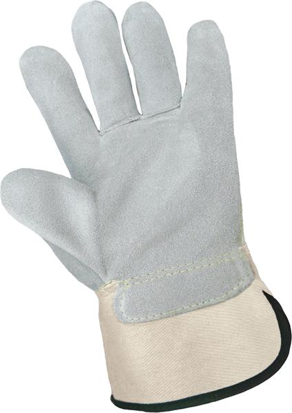 Premium side select split leather, 1.8 mm gunn cut leather palm with a 9 oz. white canvas back. Features a washable safety cuff plus the stitches are sewn with Aramid fiber
