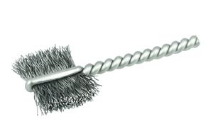 Weiler 3/4" Burrite Power Tube Brush is Ideal for cleaning and deburring internal threads on steel parts. 1/8" stem diameter for use on CNC, drills and drill presses. Features a single continuous length of stainless steel stem wire filled with a tuft of crimped wire to provide aggressive flat side action.