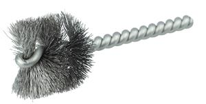 Weiler 1-1/4" Round Power Tube Brush is Ideal for cleaning and deburring smooth or threaded blind holes on aluminum, brass, bronze, cast iron, copper, high-nickel alloys, steel, stainless steel, ceramic and soft tile parts. 1/4" stem diameter for use on corded/cordless hand drill, drill press, drilling machine, CNC/milling/automatic machine. Features a single continuous length of stainless steel stem wire filled with a single spiral of crimped wire for a more flexible brushing action.