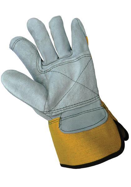 These gunn cut leather palm gloves feature premium-grade side select split cowhide with a double palm and 8 oz yellow canvas back. The duck safety cuff is washable and double layered.