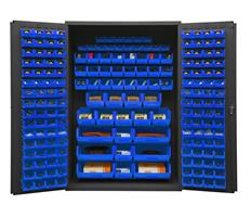 48 in. x 24 in. x 72 in. Gray Lockable Adjustable 3-Shelves Cabinet with 186 Various Size Blue Bins