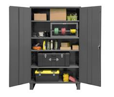Shelf Cabinet, 16 gauge, lockable with 4 adjustable shelves, flush door style, gray