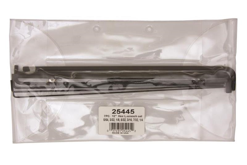 Hex Tip Hex Key L-wrench Set of 7 Piece with ProGuard™ Finish. 12" Long Arm. In Pouch. Includes: 5/64", 3/32", 1/8", 5/32", 3/16", 7/32", & 1/4"