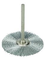 Weiler 1" Miniature Wire Wheel Brush contains fine crimped wire fill for light-duty cleaning and deburring on non-ferrous and precious metals. 1/8"a stem for use on flexible shaft tool and high speed pencil grinders.