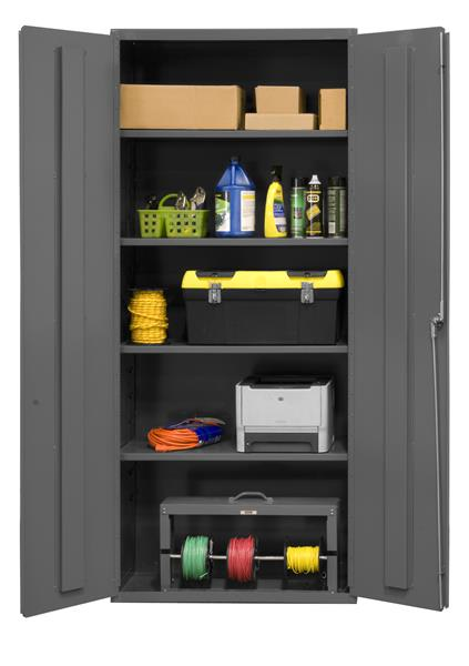 Shelf Cabinet, 16 gauge, lockable with 4 adjustable shelves, flush door style, gray
