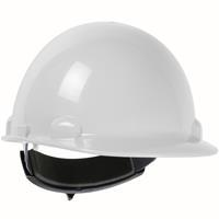 White HDPE Shell 4-Point Textile Suspension and Wheel-Ratchet Adjustment Dom Cap Style Smooth Dome Hard Hat