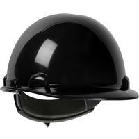 Black HDPE Shell 4-Point Textile Suspension and Wheel-Ratchet Adjustment Dom Cap Style Smooth Dome Hard Hat